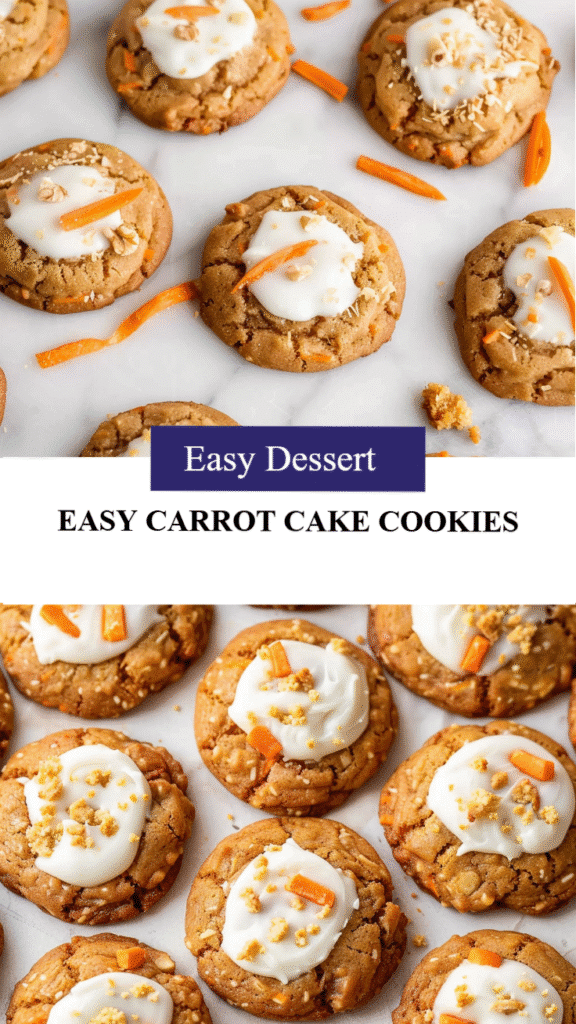 These bite-sized carrot cake cookies combine grated carrots, warm spices, and creamy cream cheese frosting. Easy to make, they deliver all the comforting flavors of classic carrot cake in a quick, family-friendly dessert.
