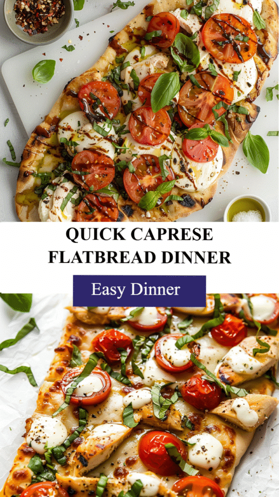 Chicken Caprese Flatbread is a delectable dish that elevates flatbread with juicy chicken, fresh tomatoes, mozzarella, and basil pesto. Bursting with flavors, this recipe is a wonderful twist on traditional Italian Caprese salad, ideal for quick lunches or casual dinners.