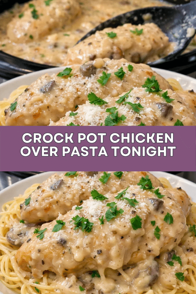 Use two forks to shred the chicken directly in the slow cooker and stir into the sauce โ or remove whole breasts and slice them cleanly on a cutting board. Both presentations work beautifully; shredded chicken distributes into the sauce and eats more like a pasta ragu, while sliced chicken gives the plate an elegant, restaurant-style look.