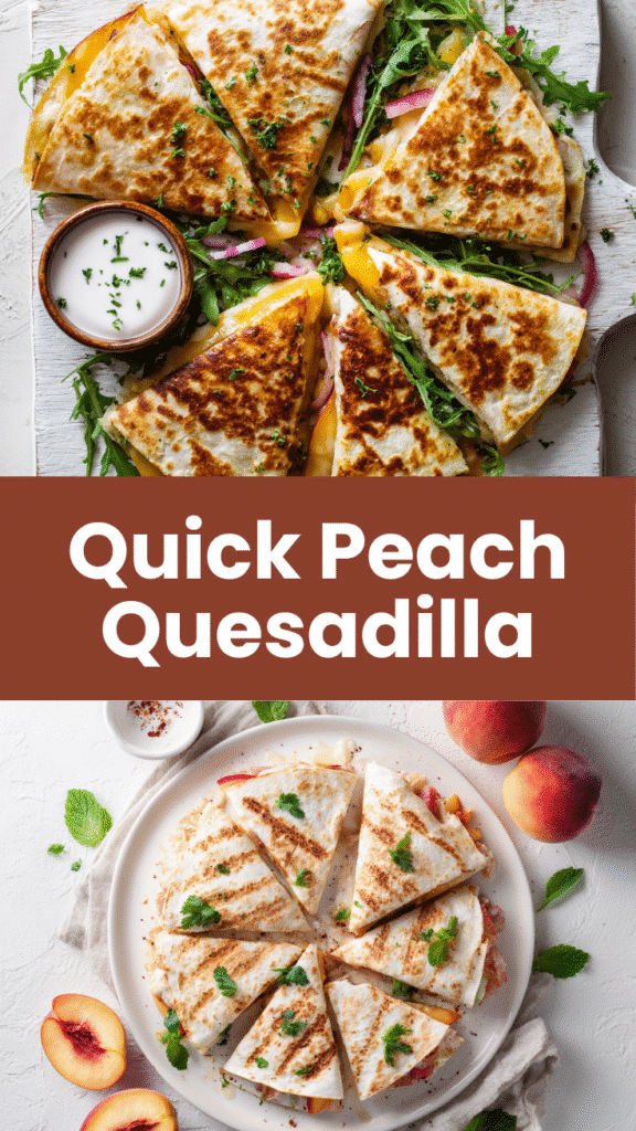 Pair these peach quesadillas with a refreshing citrus salad for a complete meal. The brightness of the salad will elevate the sweetness of the quesadillas.