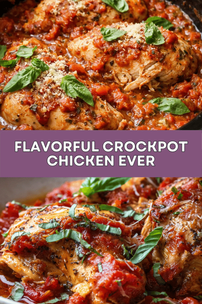 Slow Cooker Tomato Basil Chicken cooks juicy chicken breasts low and slow in a creamy marinara sauce made from pantry staples โ marinara, diced tomatoes, garlic, Italian seasoning, and a heavy cream slurry that thickens into a rich, velvety sauce ready to spoon over pasta or rice in just 3 hours.